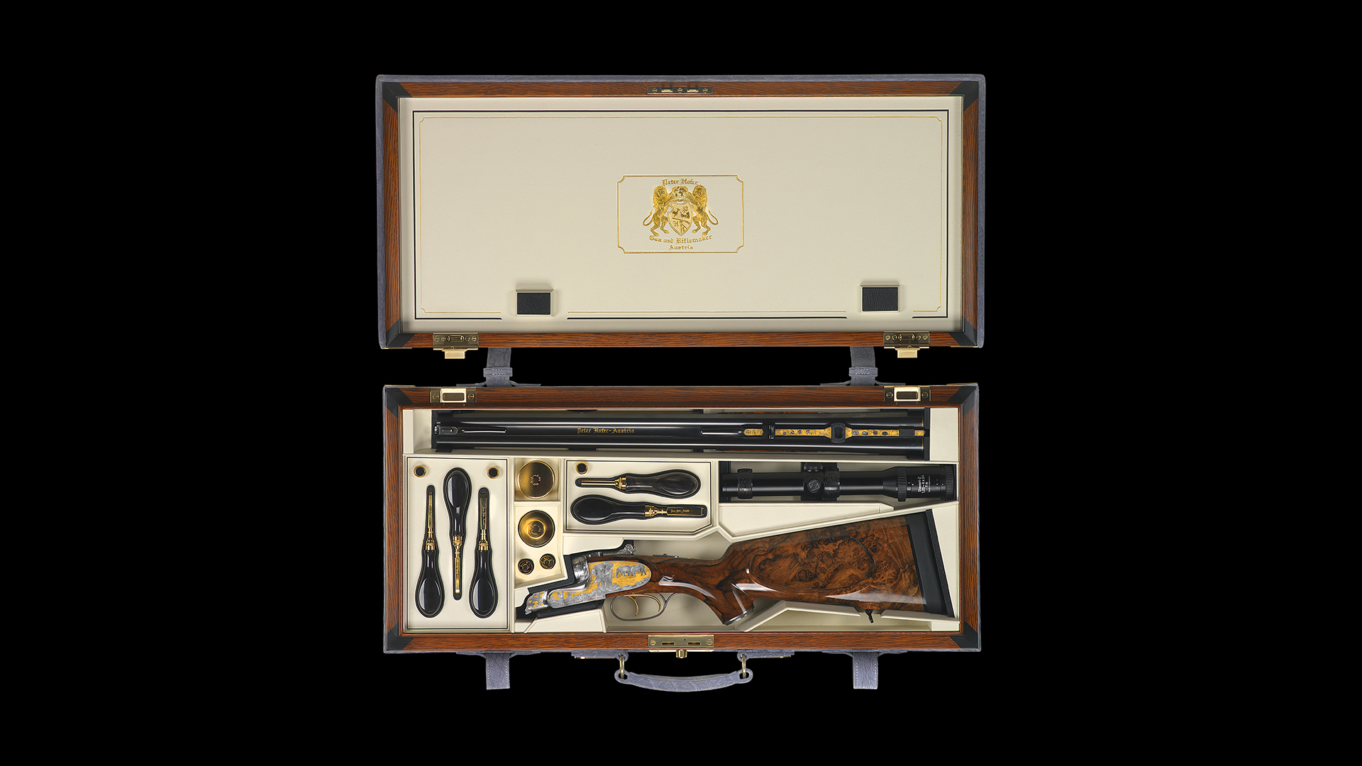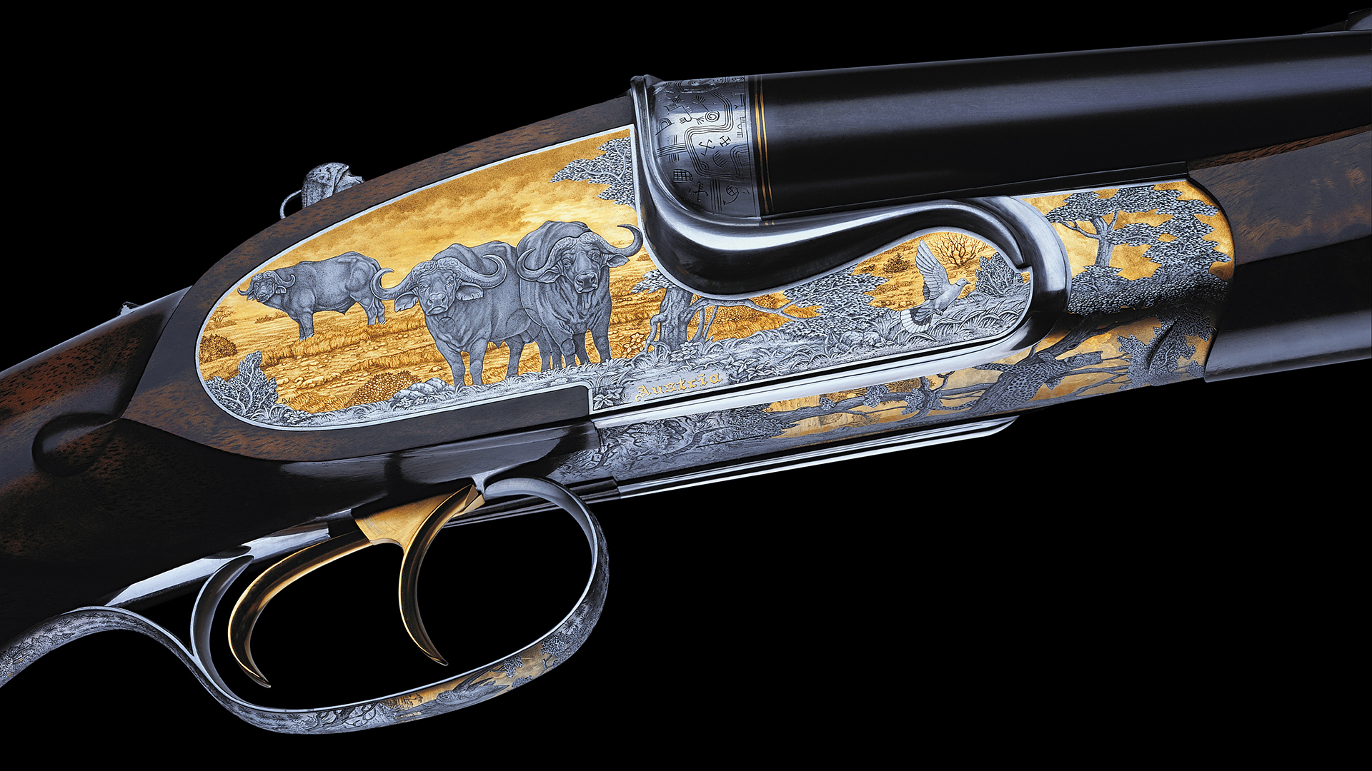 Weltweit aufwendigste Großwild Doppelbüchse Herstellungszeit: 21.400 Stunden