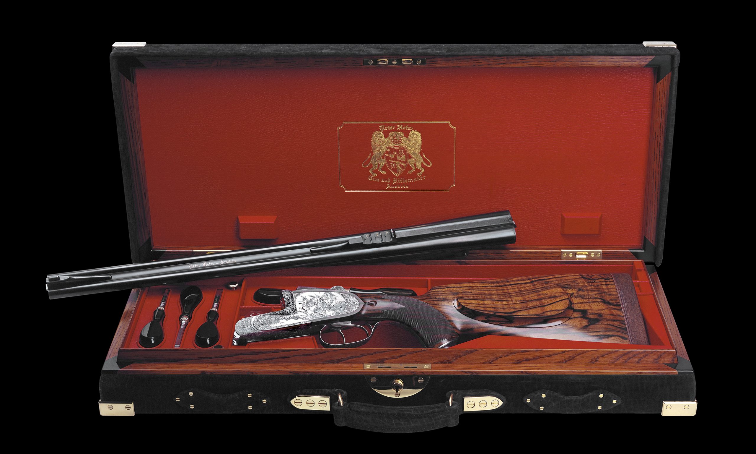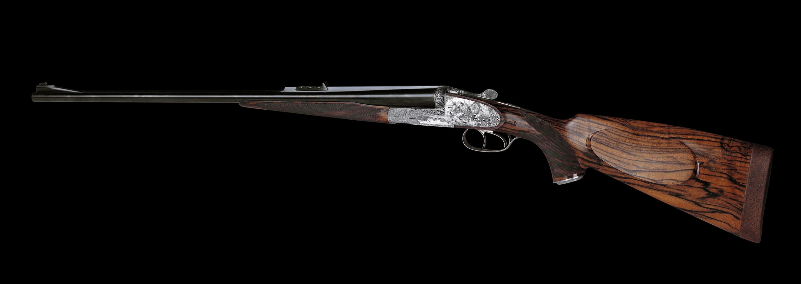 Mit dieser außergewöhnlichen Gravurleistung von Barbara Krondorfer zählt diese Doppelbüchse in Kaliber 375/375 H&H zu den sogenannten „Megarifles“ von Peter Hofer. Der Büchsenmachermeister Peter Hofer spricht dann von einer Megarifle, wenn die Fertigungszeit einer Waffe jenseits der 10.000 Arbeitsstunden liegt. Im Fall der „Rubens“ Doppelbüchse betrug die Herstellungszeit 16.500 Stunden.