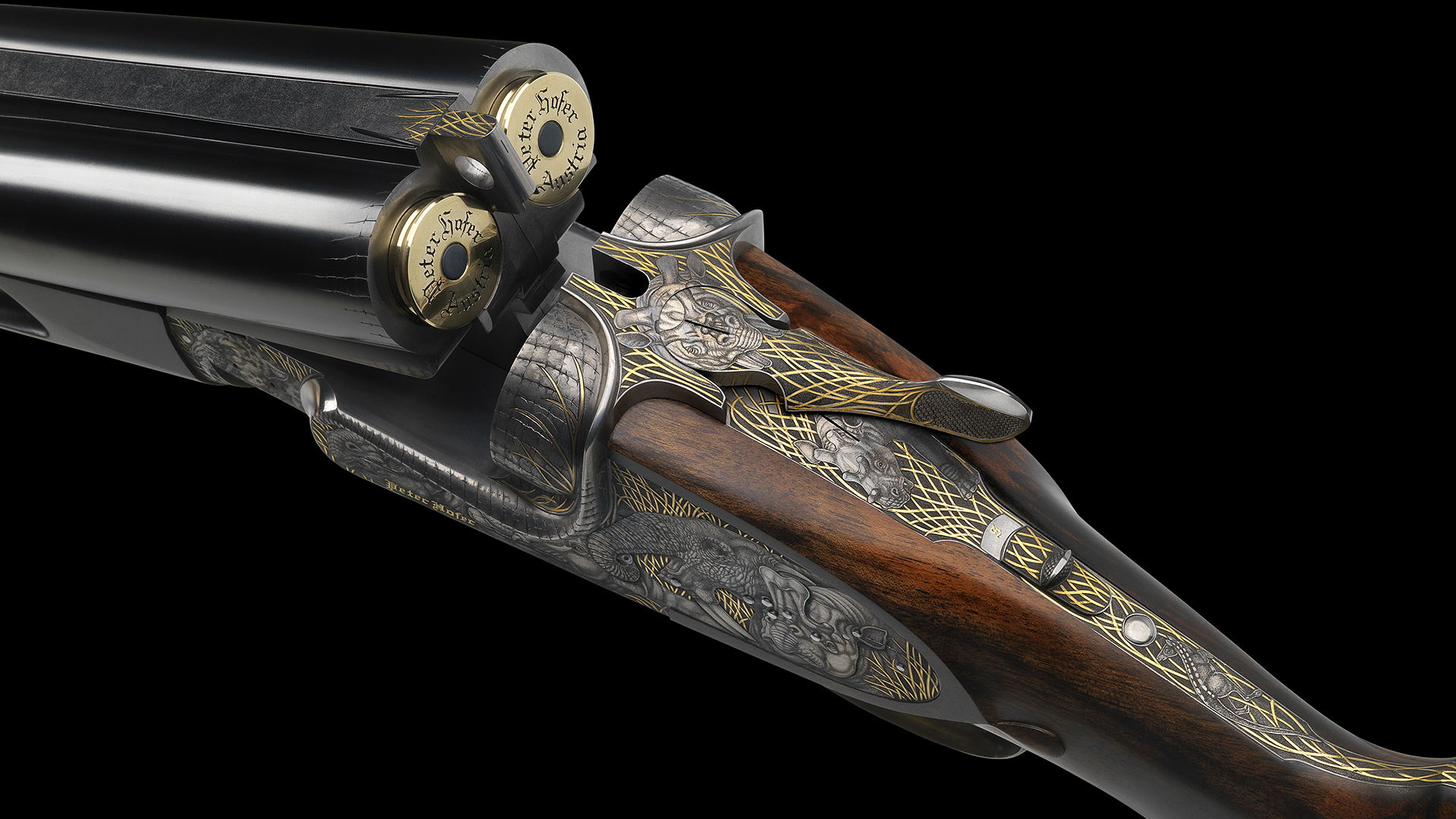 Die weltweit größte von Peter Hofer entwickelte Doppelbüchse Kaliber 4 Bore ist die erste Doppelbüchse weltweit, die in diesem Kaliber für Nitropulver konstruiert und gebaut wurde. Gemeinsam mit der kleinsten Doppelbüchse bildet sie ein Set, von dem die ganze Welt spricht – ein Set, das es weltweit kein zweites Mal gibt.