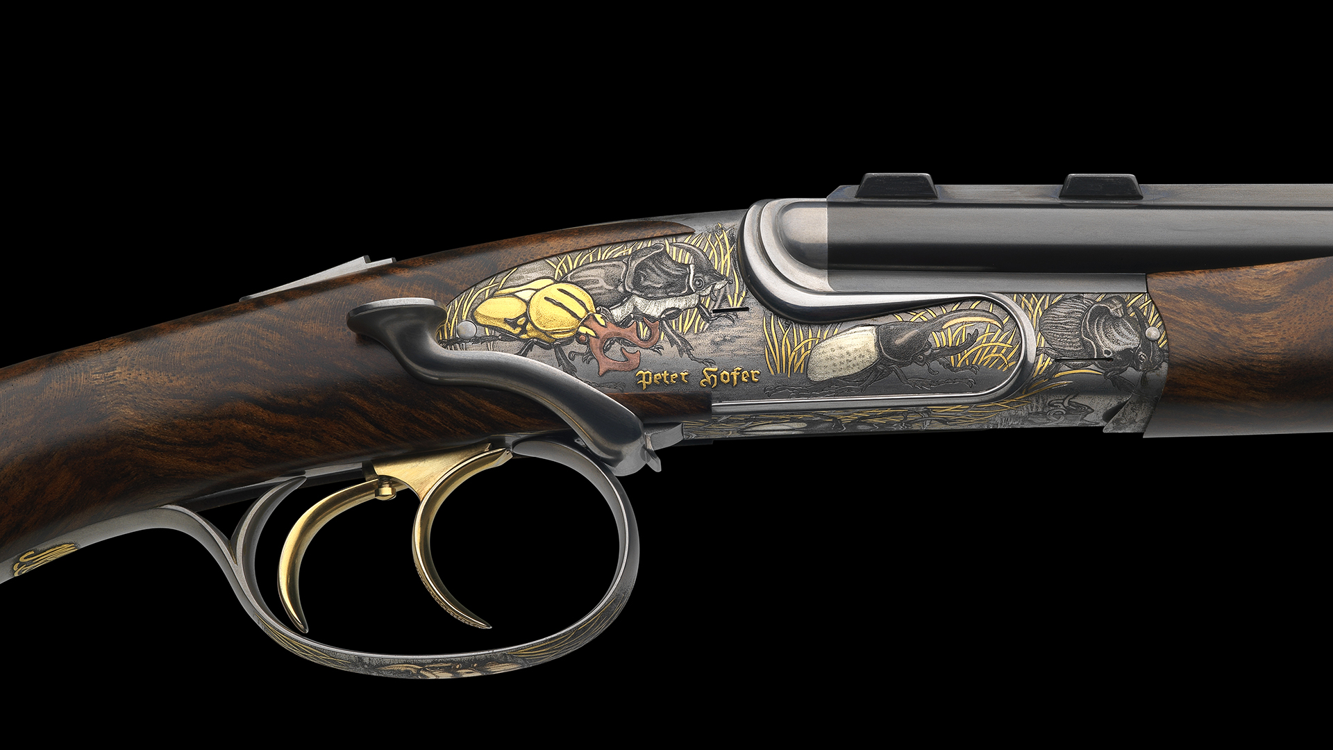 Um den von Peter Hofer intendierten Set-Charakter zu erreichen, wurden auf der weltweit kleinsten Doppelbüchse die Insekten aus der Zeit des Pleistozän verewigt.