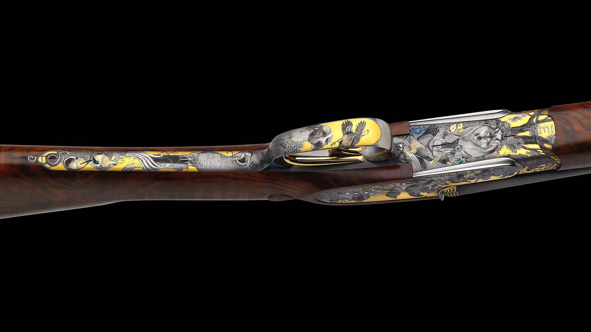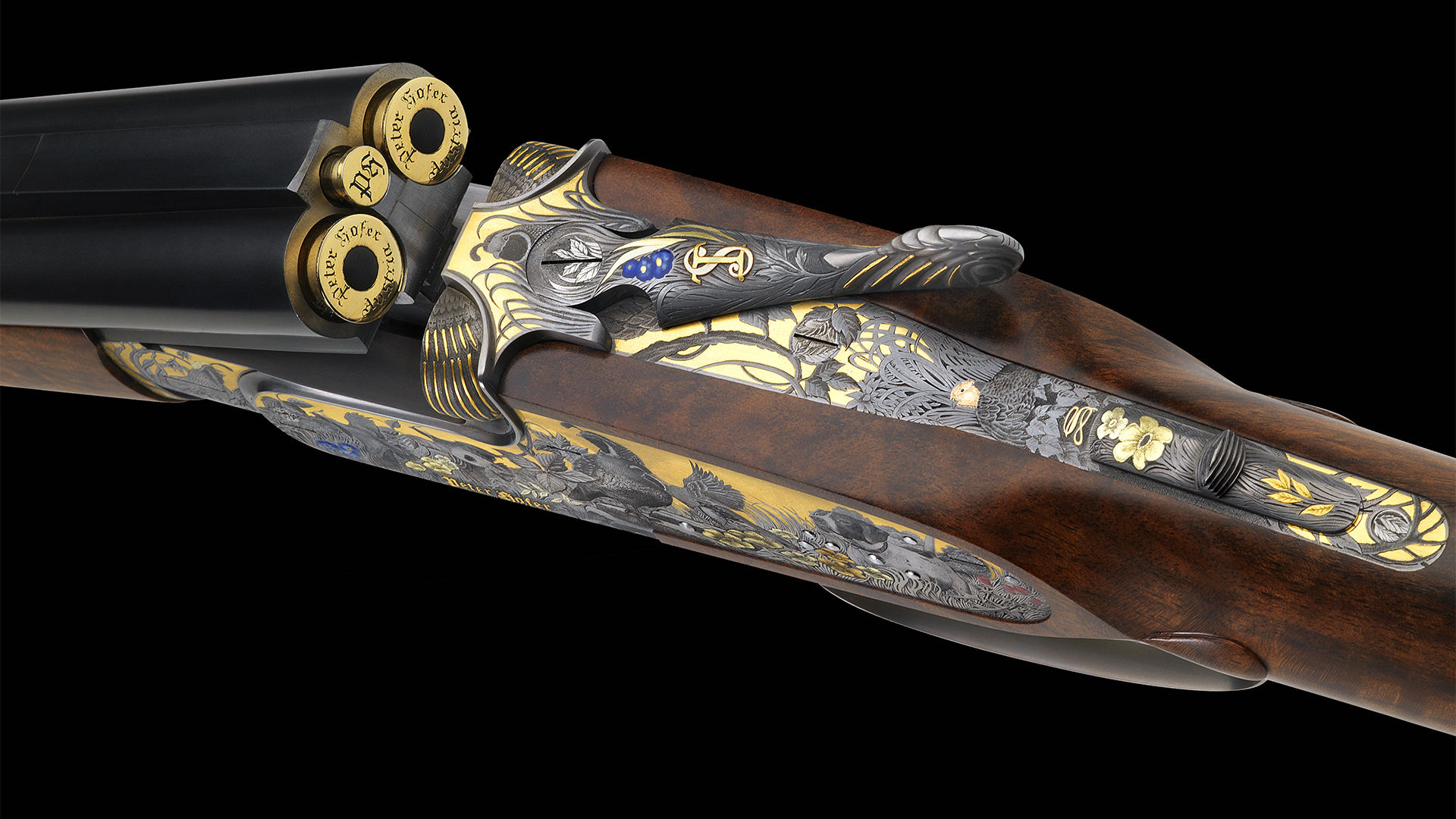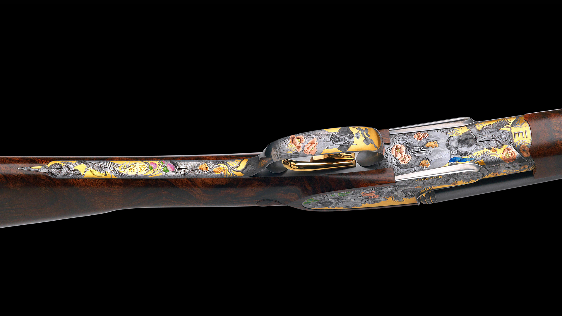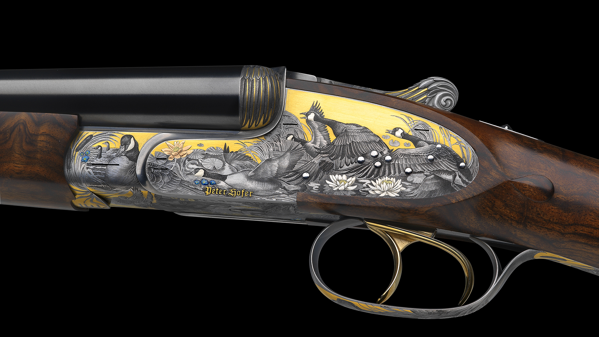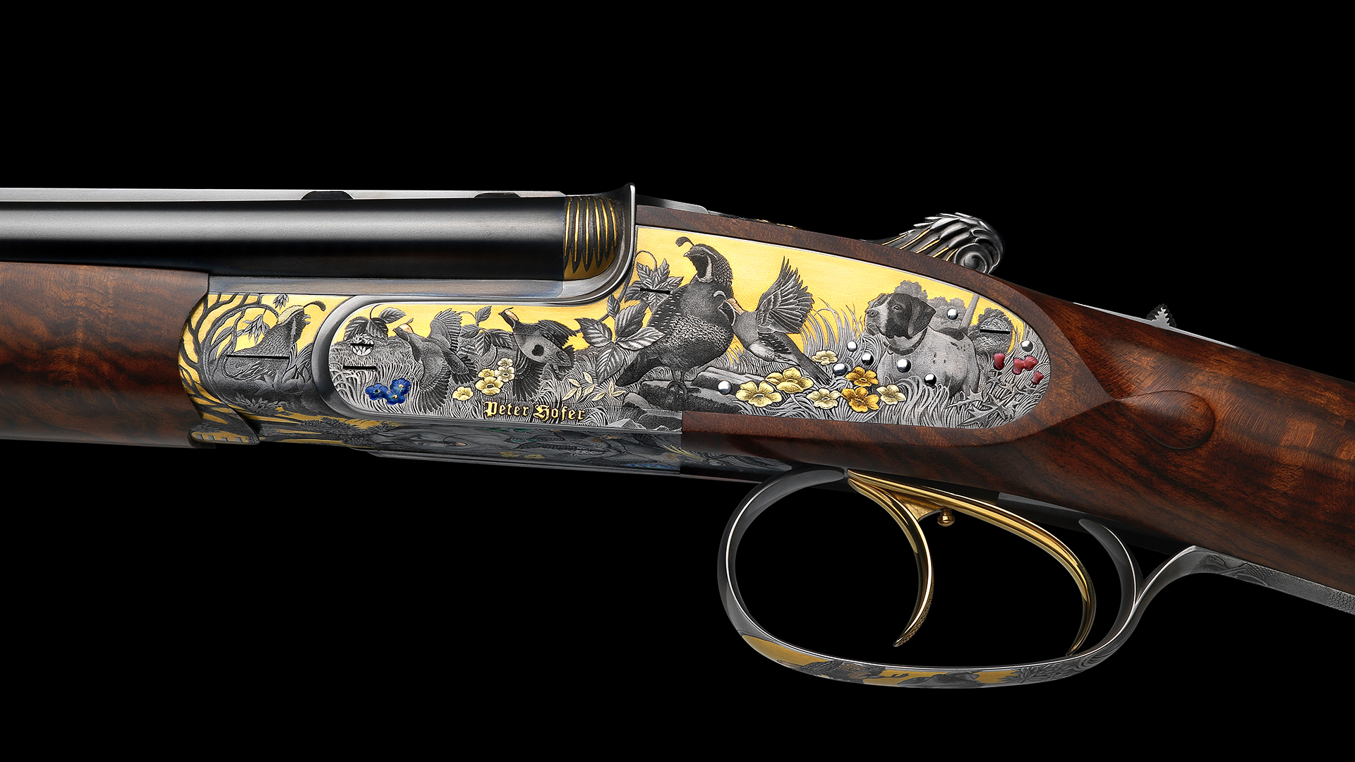 Gemäß ihrer Verwendung wurden auf jeder Flinte das Flugwild und die für dieses Wild speziell ausgebildeten Jagdhunde, sowie detailgetreue Landschaftsszenen des Jagdgebietes in feinster Bulinostichtechnik verewigt. Die 24-Karat Massivgold- und andere Edelmetalleinlagen sowie die speziell für dieses Set entwickelten Emaillierungen erzielen Effekte, die in ihrer Schönheit nur mehr von der Natur selbst übertroffen werden können.