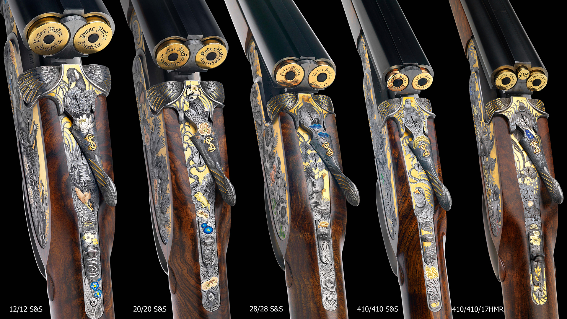 Die große Herausforderung bei einem Flintenset mit unterschiedlichen Kalibern besteht darin, die Formen und Details der jeweiligen Flinten beizubehalten, die Maße, Balance und Gewichte jedoch stufenweise an das jeweilige Kaliber exakt anzupassen. Aufgrund seiner großen Erfahrung bei der Entwicklung neuer Waffenmodelle und die oft bis ins absolute Extrem betriebene Gewichtsreduktion verfügt Peter Hofer über das notwendige Knowhow und kämpft um jedes Gramm.