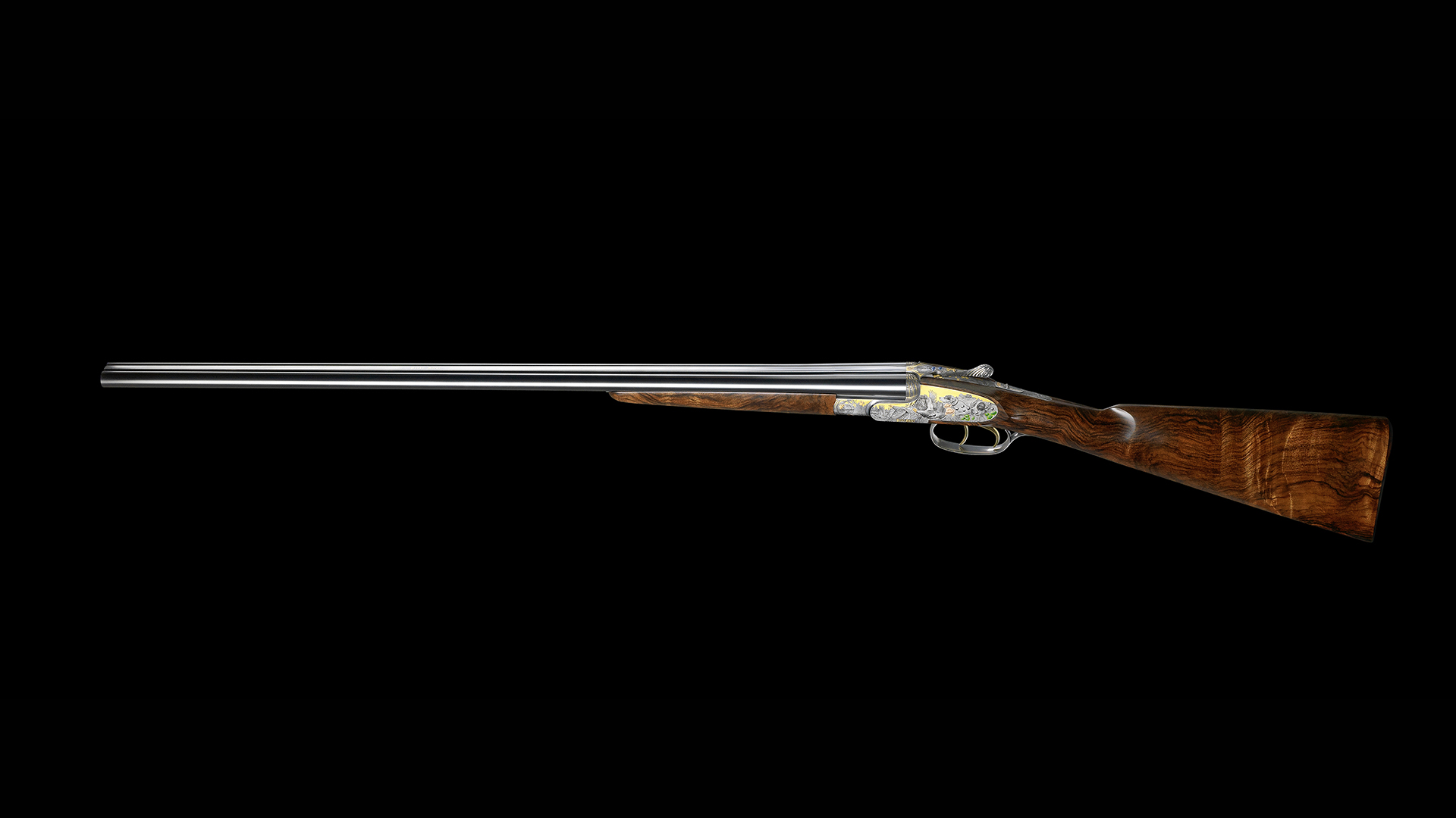 Dieses einzigartige Set von fünf Flinten mit unterschiedlichen Kalibern stellt das Maximum der jagdlichen Verwendung dar und wurde in einer nicht mehr zu übertreffenden handwerklichen Perfektion gefertigt.  Handgearbeitete Jagdwaffen tragen im Gegensatz zu maschinell gefertigten Waffen die ganz spezielle Handschrift des Büchsenmachers, Schäfters und Graveurs.