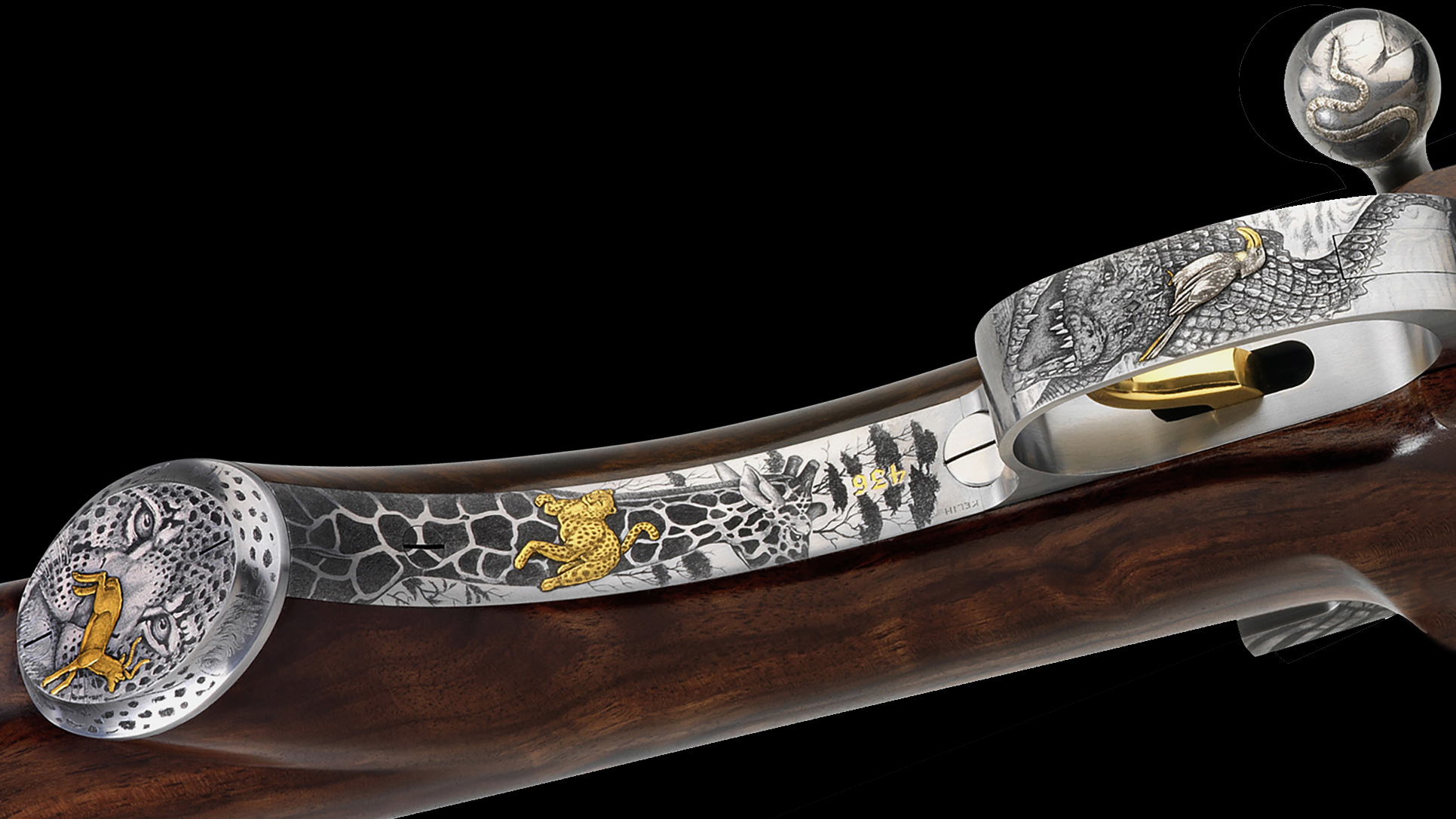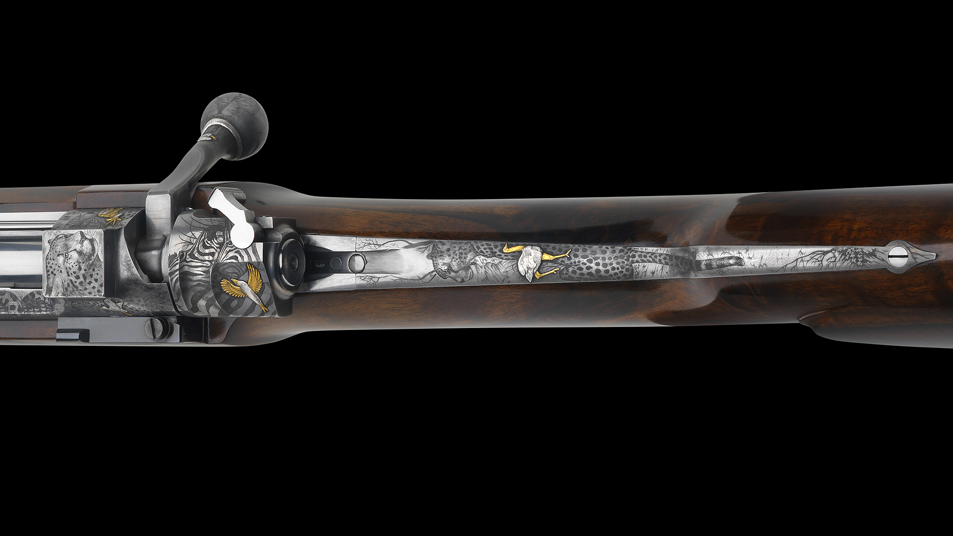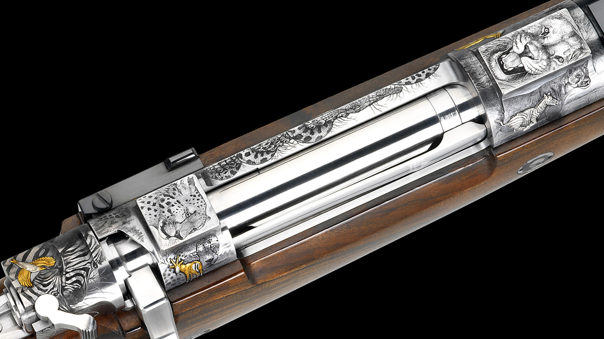 Bei der Jagd auf wehrhaftes Großwild ist das Kaliber 500 Jeffery mit einer Auftreffenergie von 10.000 Joule unübertroffen. Diese Peter Hofer Repetierbüchse ist Ihre Lebensversicherung im Busch.