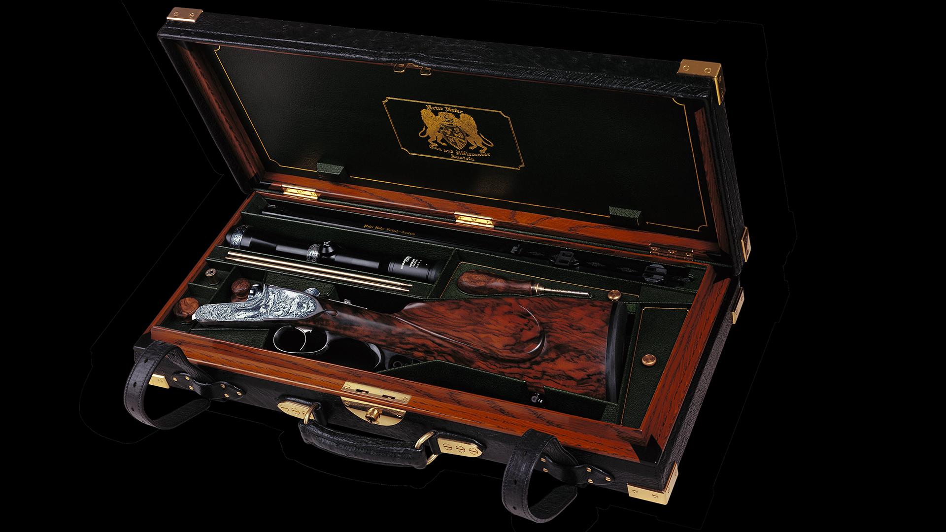 An dieser Kipplaufbüchse wurde 9,5 Jahre gearbeitet und zweifelsohne wird die technische und künstlerische Ausführung dieses Meisterwerkes im handgearbeiteten Jagdwaffenbau für immer unübertroffen bleiben.