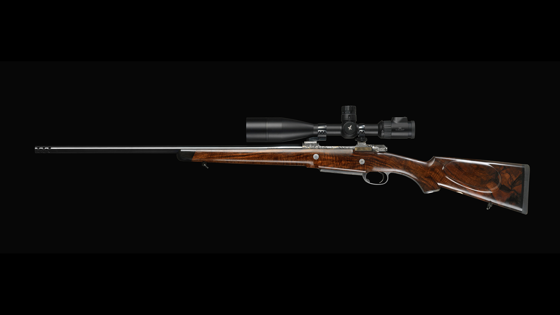 • Robust geschmiedetes Magnum Mausersystem mit verlängerter Scheibe, verlängertem Abzugsbügel, vergrößertem Magazin für 5 Patronen, verstärktem Lauf mit Spezialschiene sowie Kornsattel und zwei robust verarbeiteten Riemenbügeln