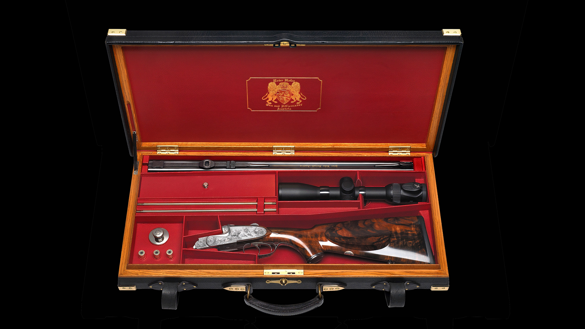 Die Firma Peter Hofer Jagdwaffen ist bekannt für ihre einzigartigen Neuentwicklungen, bei denen sie stets an die Grenzen des technisch Machbaren geht. Bei dieser Waffe ist Peter Hofer und seinem Team jedoch das nahezu Unmögliche gelungen. Die hier präsentierte Waffe ist der weltweit kleinste und leichteste Seitenschlossdrilling, der jemals entwickelt wurde. Fachkundige Personen wissen, wie viele Teile im Inneren einer Seitenschlosswaffe sind. Die Anzahl der technischen Teile wurde bei diesem Waffenmodell aufgrund einer neu entwickelten Seitenschloss-Kugelumstellung noch um ein Vielfaches erhöht, was im Normalfall unweigerlich zu einer Vergrößerung der Waffenmaße und des Gesamtgewichtes geführt hätte.