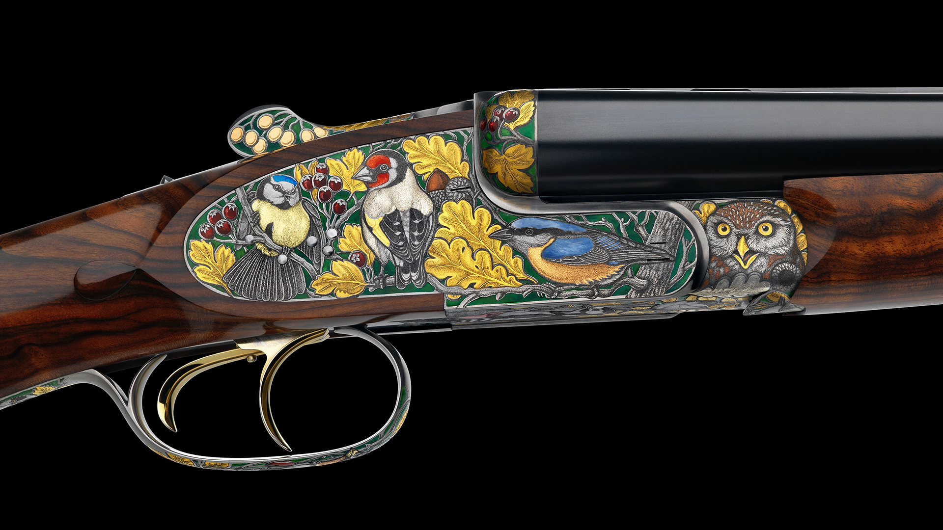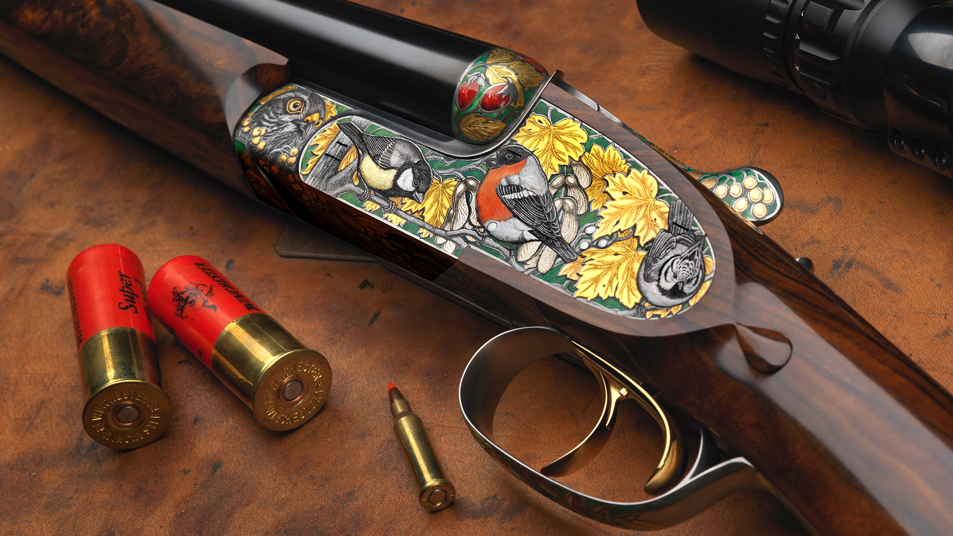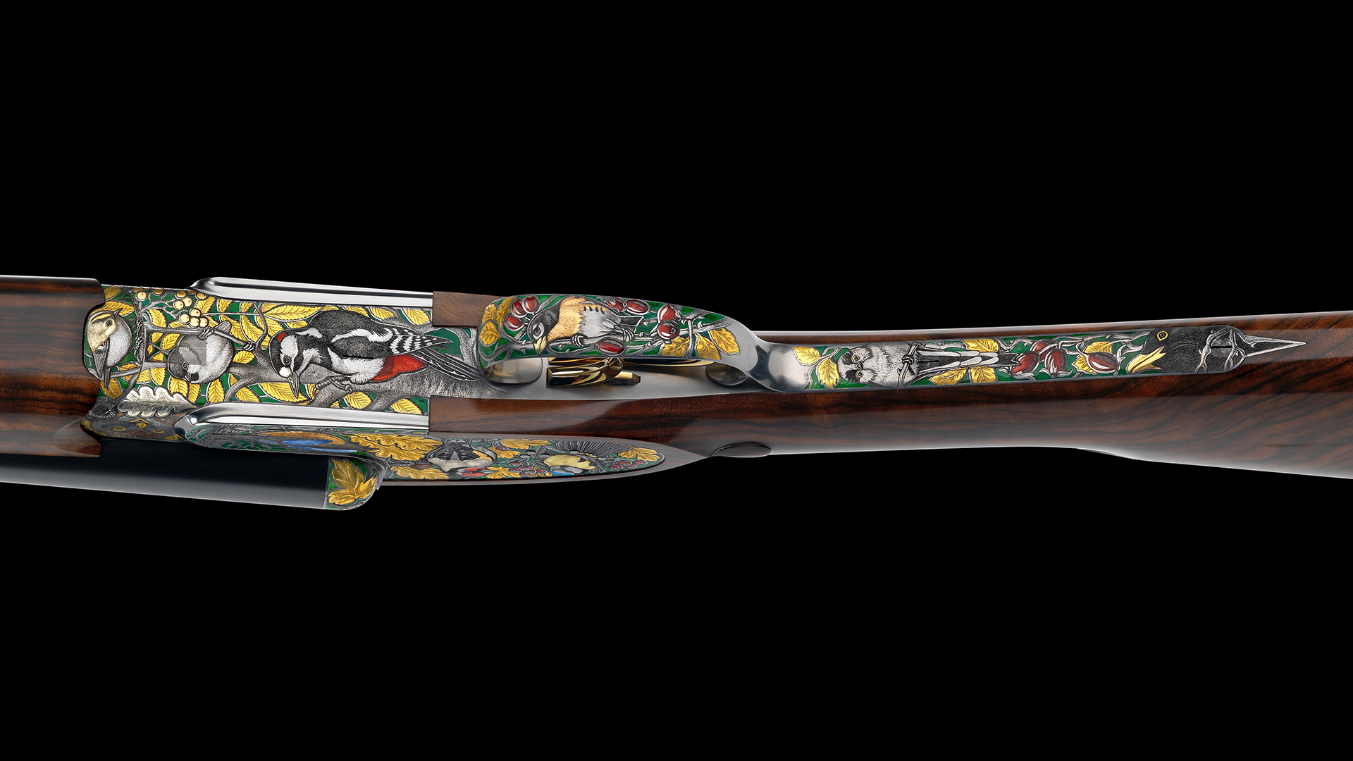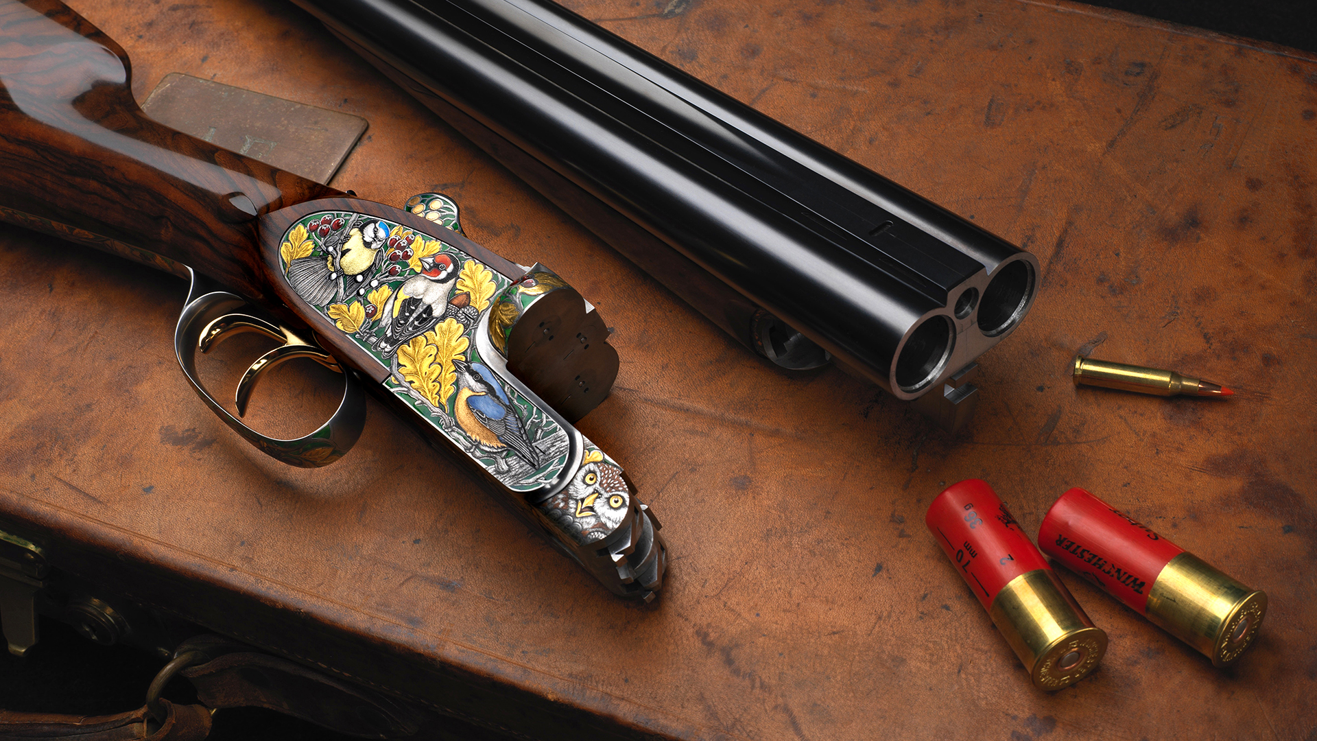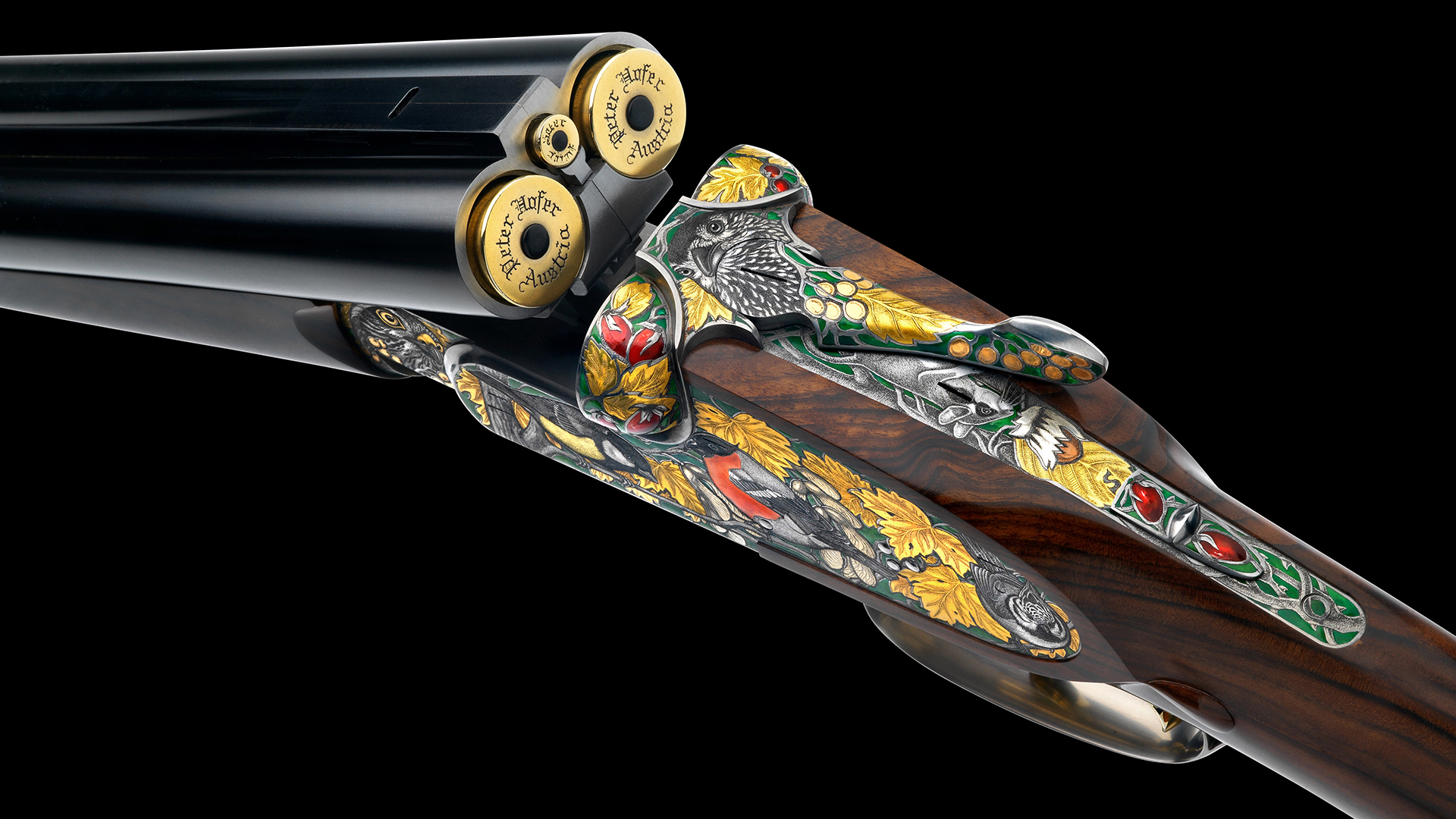 • Vorderer Abzug ausgeführt als Einabzug für das Schrotkaliber, Schussfolge RE-LI. • Hinterer Abzug ausgeführt mit französischem Stecker für den versteckten Kugellauf. • Automatischer Peter Hofer Spezialejektor für die Schrotläufe. • Separater, in die Ejektoren integrierter Extraktor für den versteckten Kugellauf