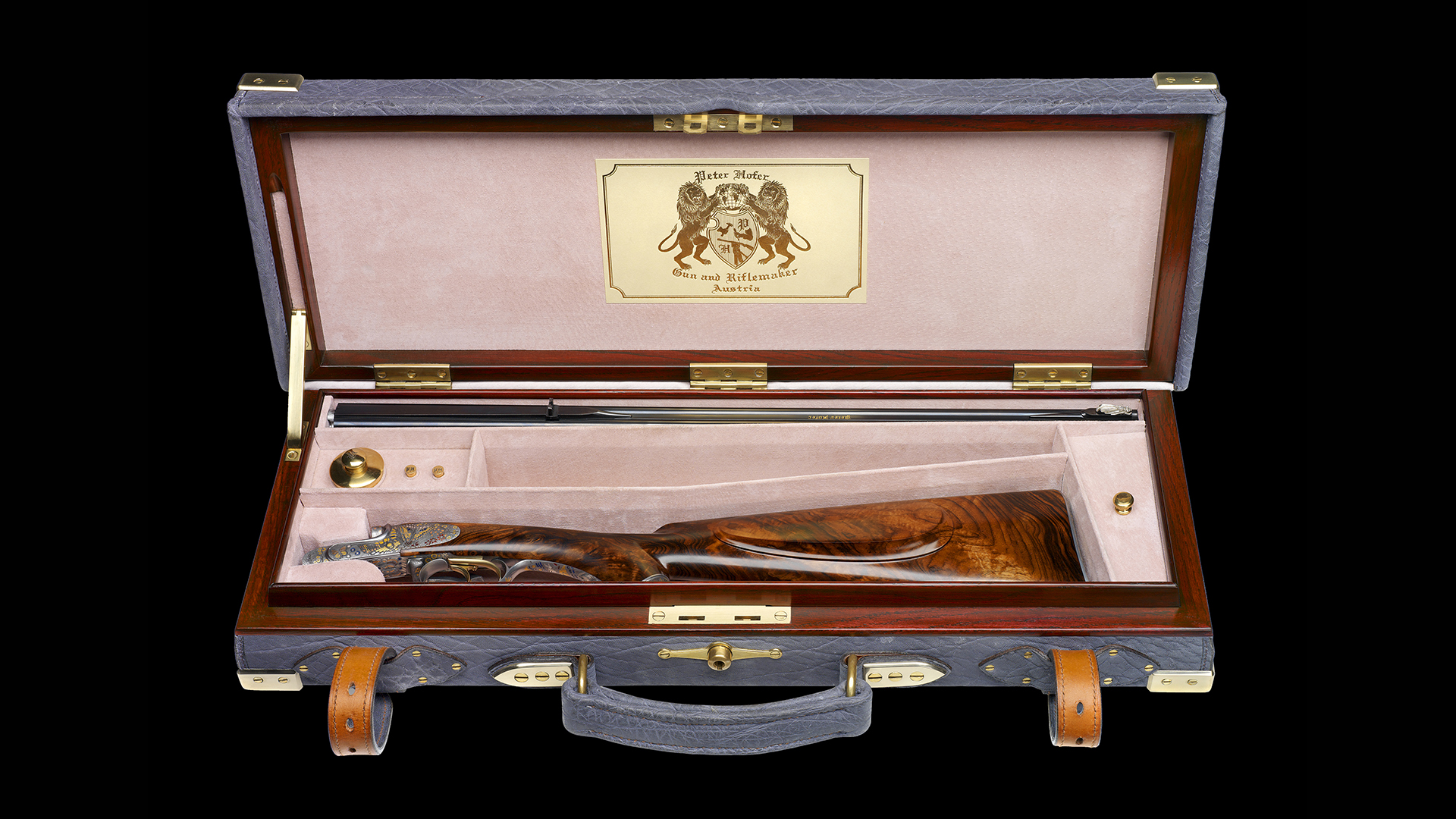 Die hier präsentierte Doppelbüchse mit einem Rekordgewicht von 0,9 kg ist weltweit einzigartig und wird nur von der Manufaktur Peter Hofer Jagdwaffen von Hand gefertigt.