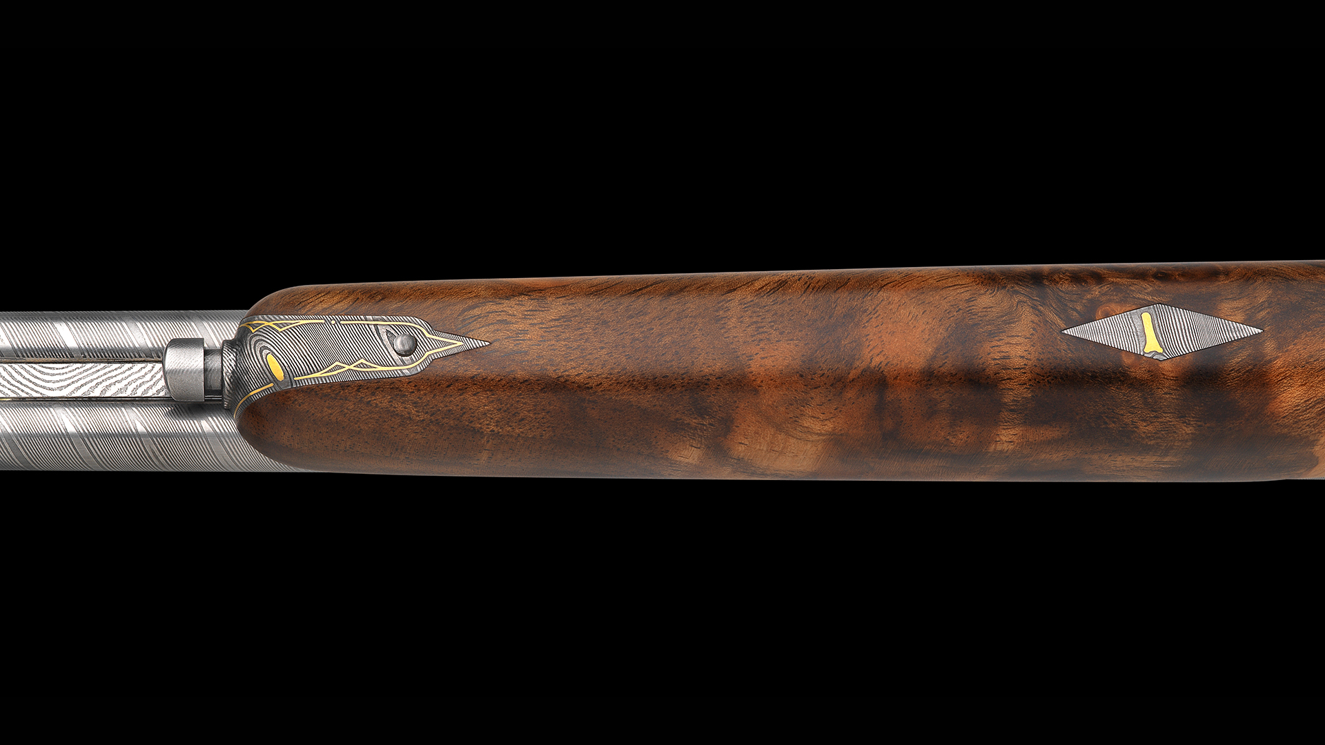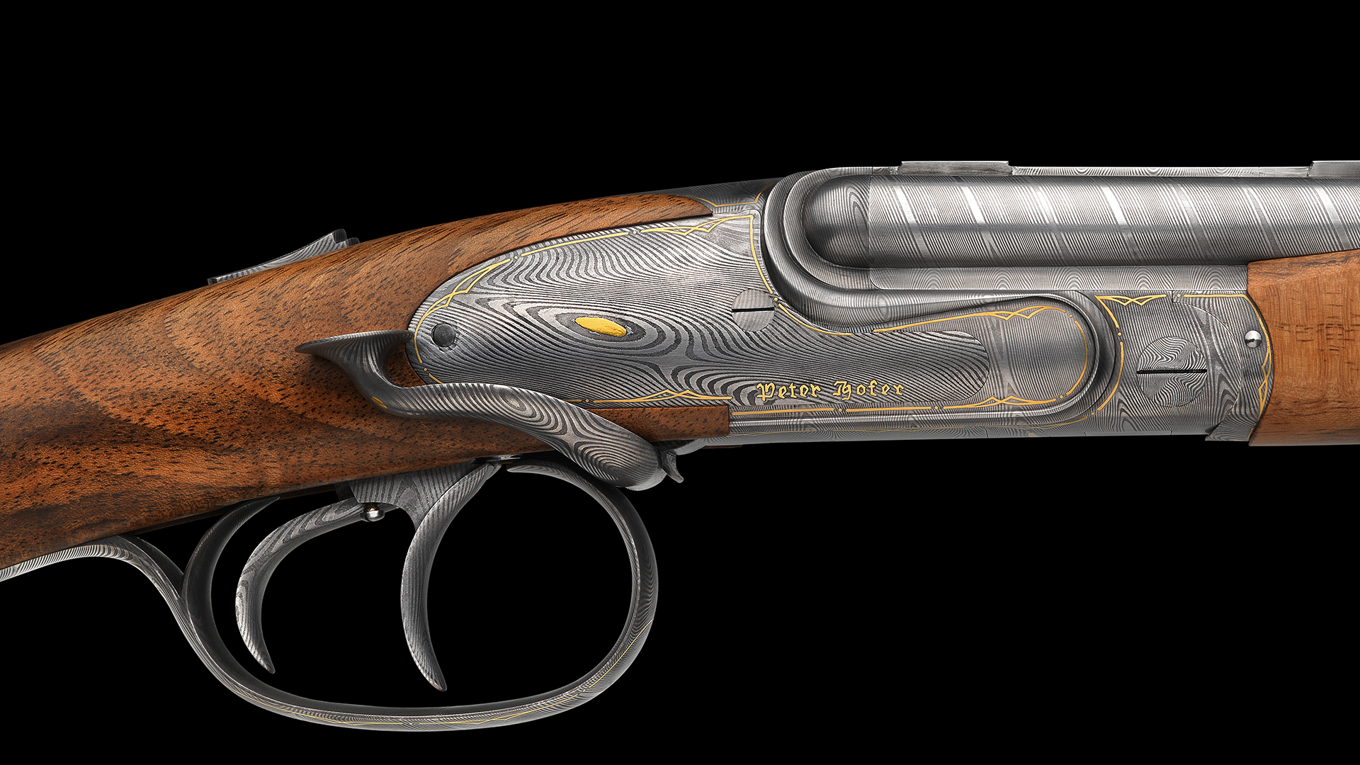 Mit dieser weltweit kleinsten Doppelbüchse in Damaststahlausführung ist es der Manufaktur Peter Hofer gelungen, zwei Weltrekorde in einer Waffe zu vereinen.