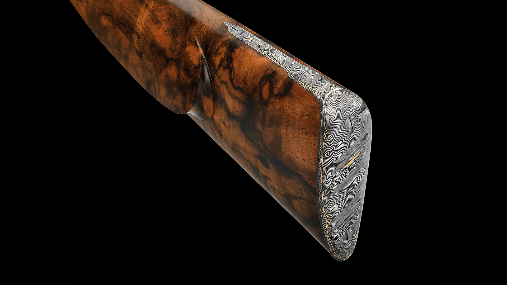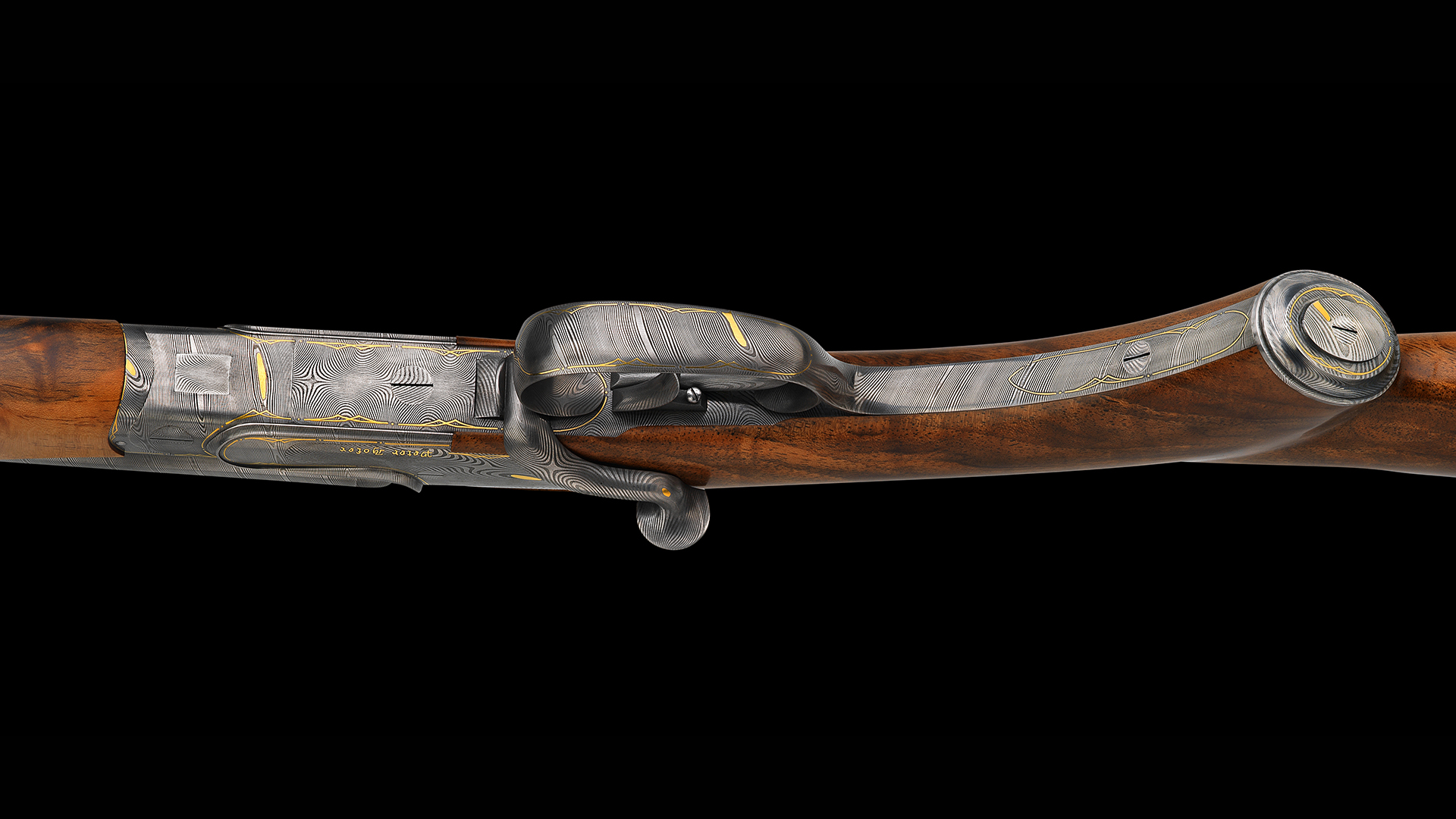 Die künstlerische Gestaltung einer Peter Hofer Damaststahldoppelbüchse ist darauf ausgerichtet, die Marmorierungen des Damaststahls zusätzlich kreativ zu betonen. Der Damaststahl ist wie ein Block aus Marmor, ein Kunstwerk in sich. Die Gestaltungsvielfalt von Damaststahl ist enorm, stets jedoch konzentriert sich der künstlerische Sinn auf die Natur gegebene Dominanz von Feuer und Stahl.