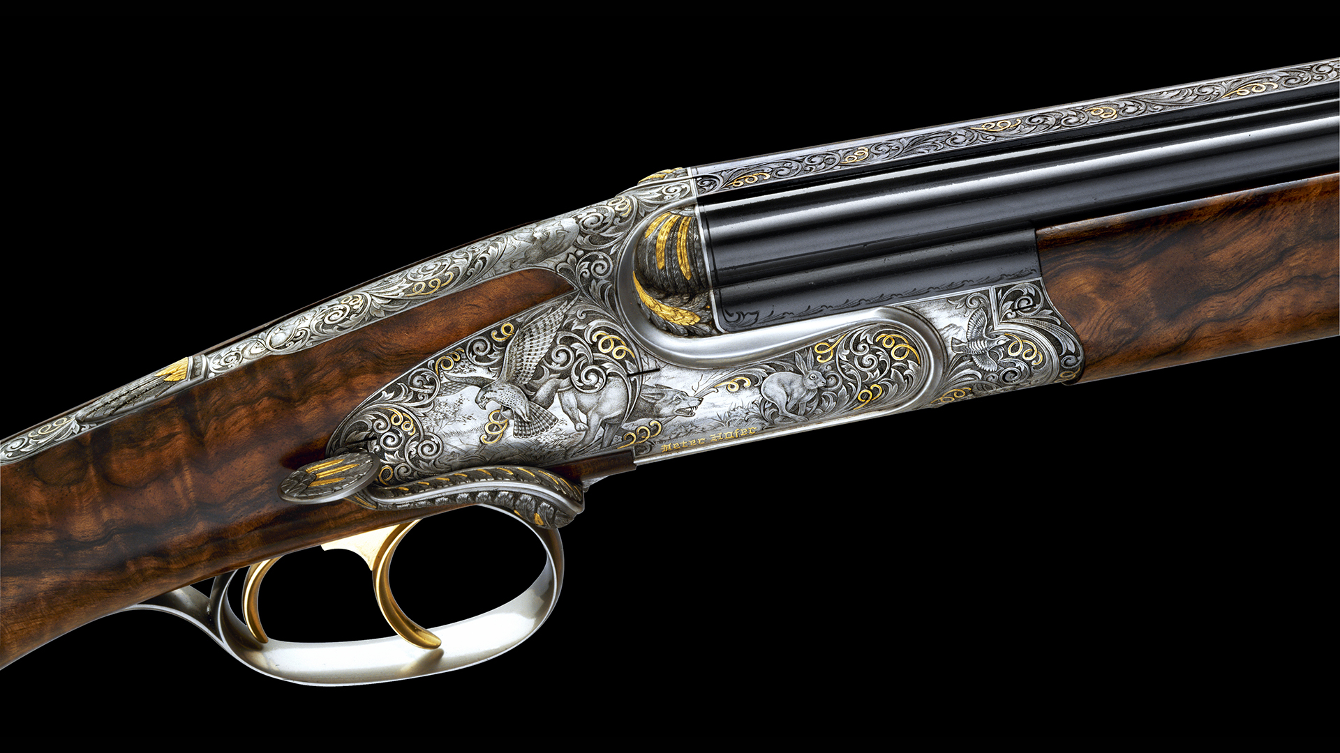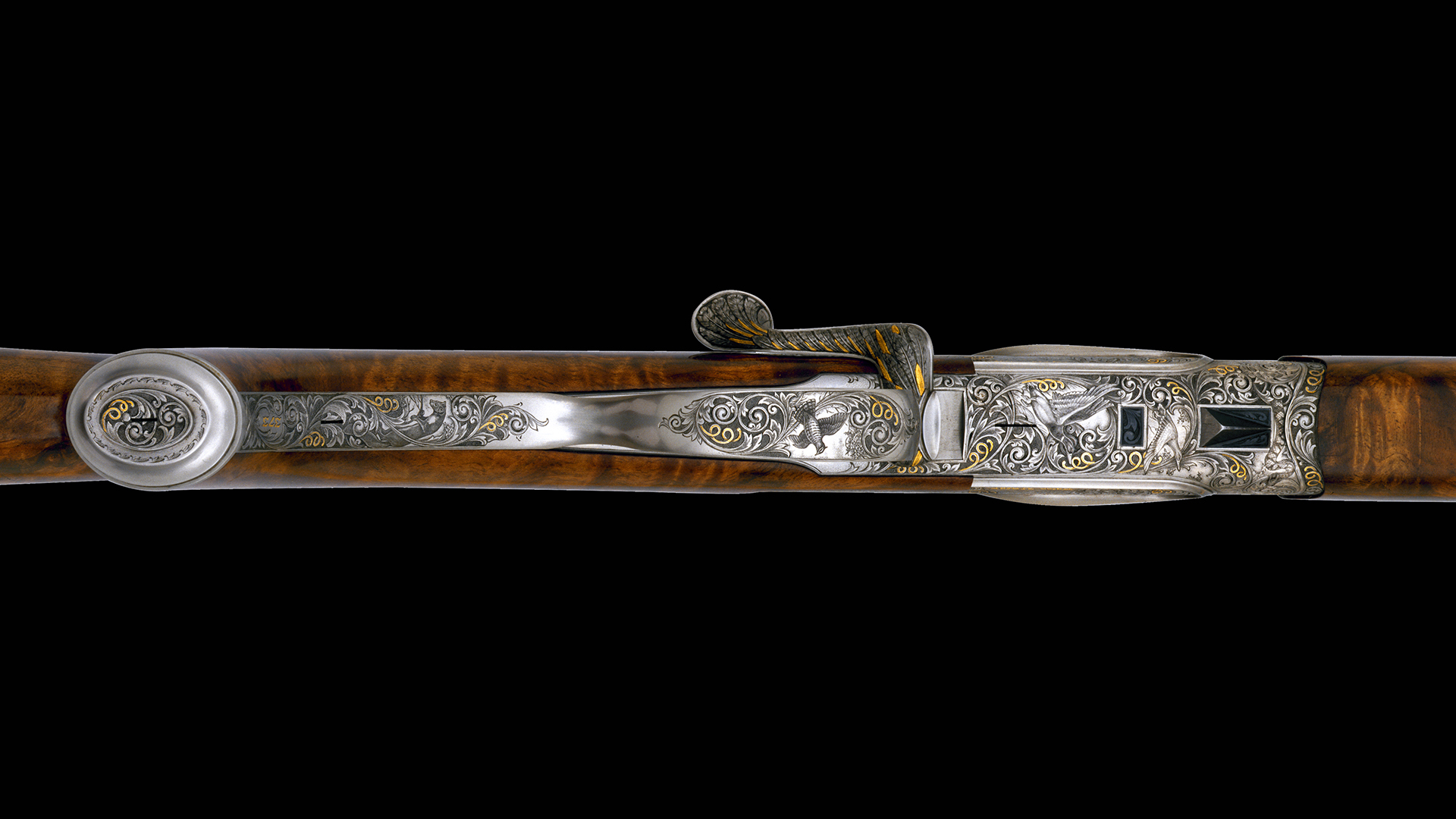 Nach der Entwicklung und Kreation der weltweit kleinsten Doppelbüchse und die dadurch ausgelöste Faszination beim internationalen Fachpublikum sah Peter Hofer einmal mehr seinen Ehrgeiz als Büchsenmachermeister gefordert und setzte seine Arbeit auf dem sehr schwierigen Feld der Kleinstbauweise fort. Das Ergebnis penibelster Gewichtsarbeit und präzisester Büchsenmacherkunst war wiederum eine Weltrekordwaffe, die es in der Form nur bei Peter Hofer Jagdwaffen gibt. Der hier präsentierte weltweit kleinste und leichteste Doppelbüchsdrilling.